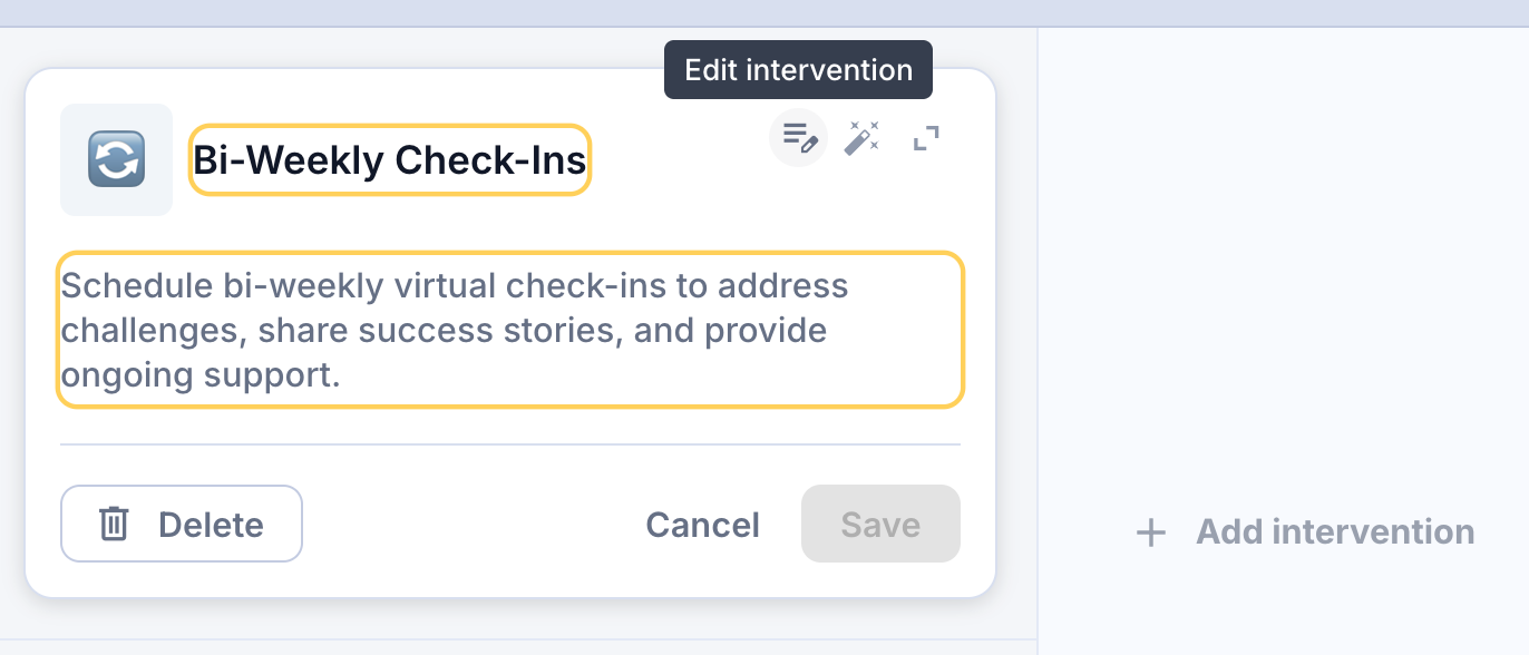 When you're happy the plan that Tilda has mapped out, you can edit directly within the planning window. You can tweak wording, shift the order of interventions, or remove what you don’t need.